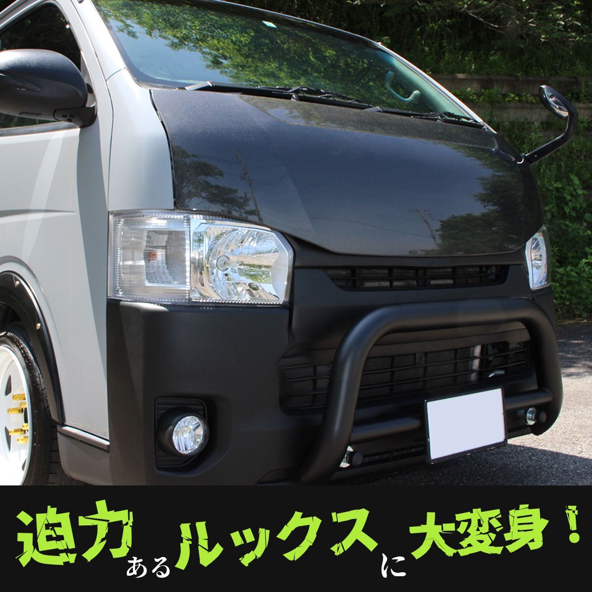 | メーカー | ハイエース、レジアスエース用、カーボンファイバー フロントボンネット エアロ |