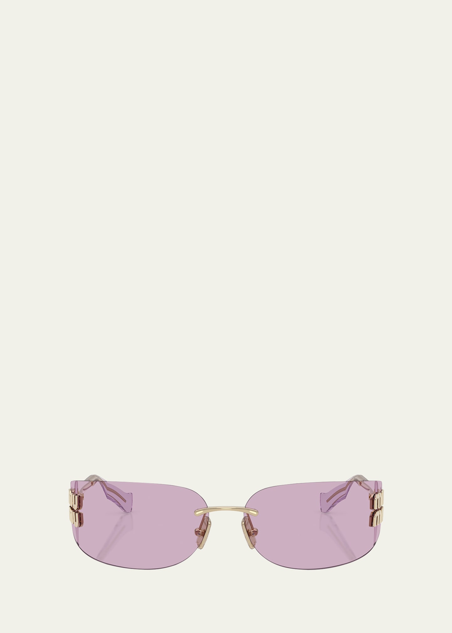小物 miumiu rimless sunglasses purple Miu Miu Rimless Logo Metal Rectangle Sunglasses - Bergdorf Goodman